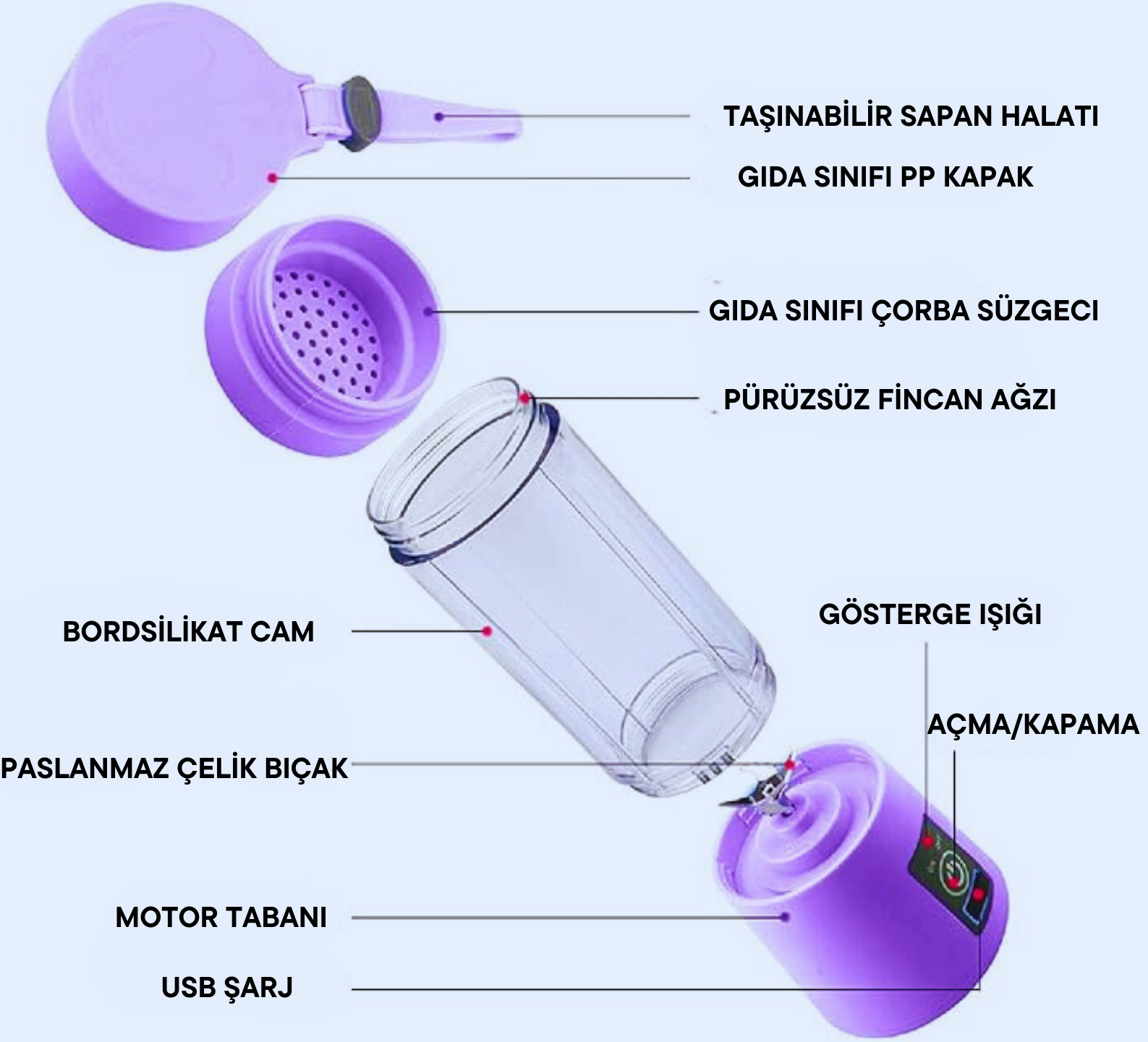 1 Adet TAŞINABİLİR ŞARJLI BLENDER -